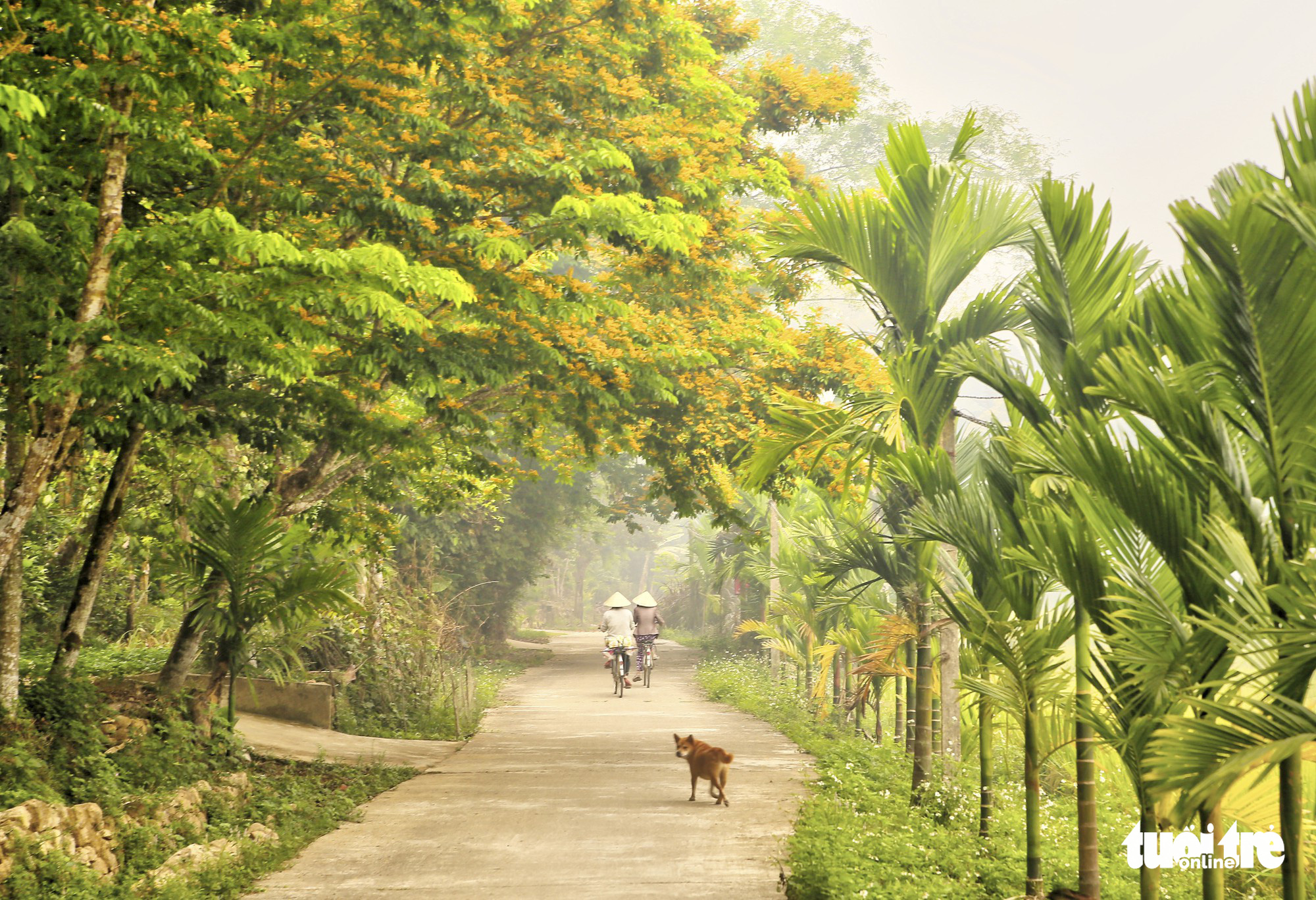 Hoa sưa đã rụng trên con đường nhỏ vào làng - Ảnh: VŨ CÔNG ĐIỀN