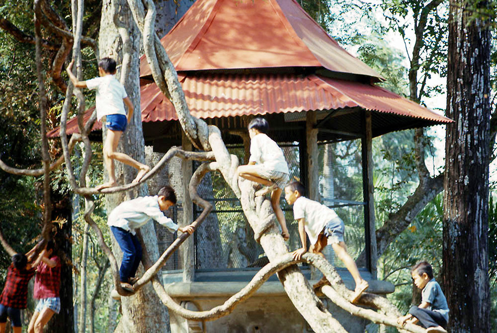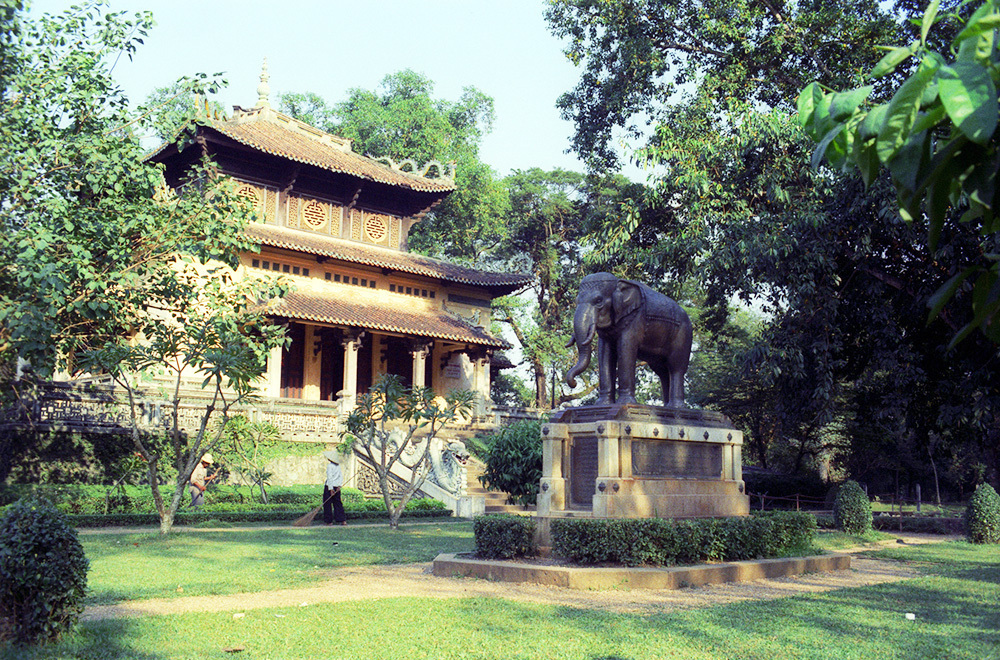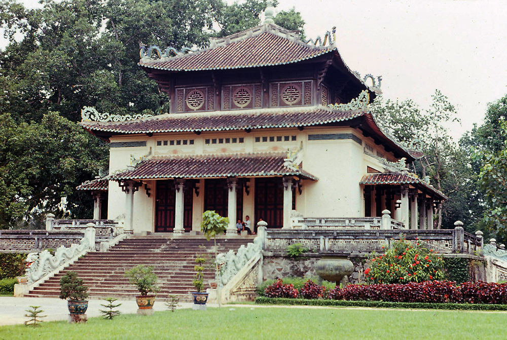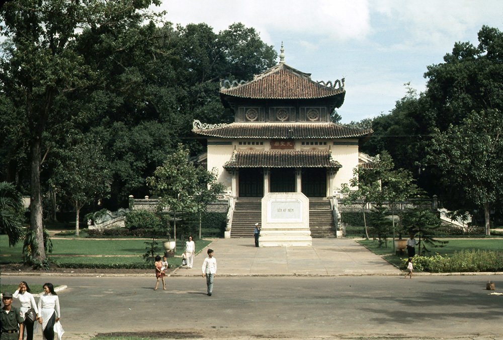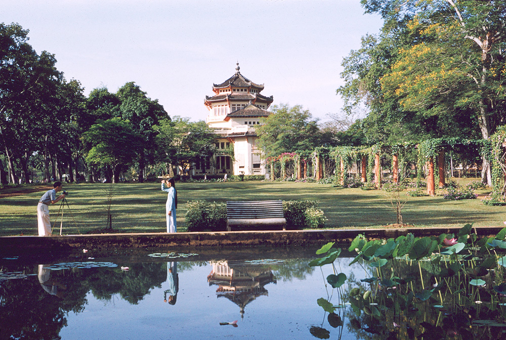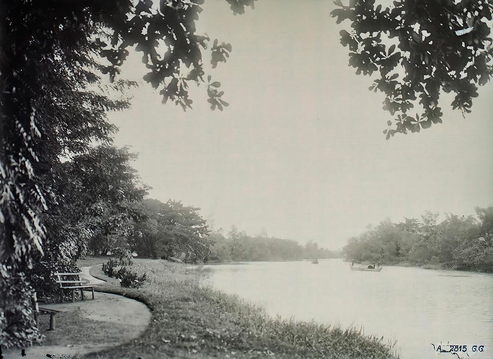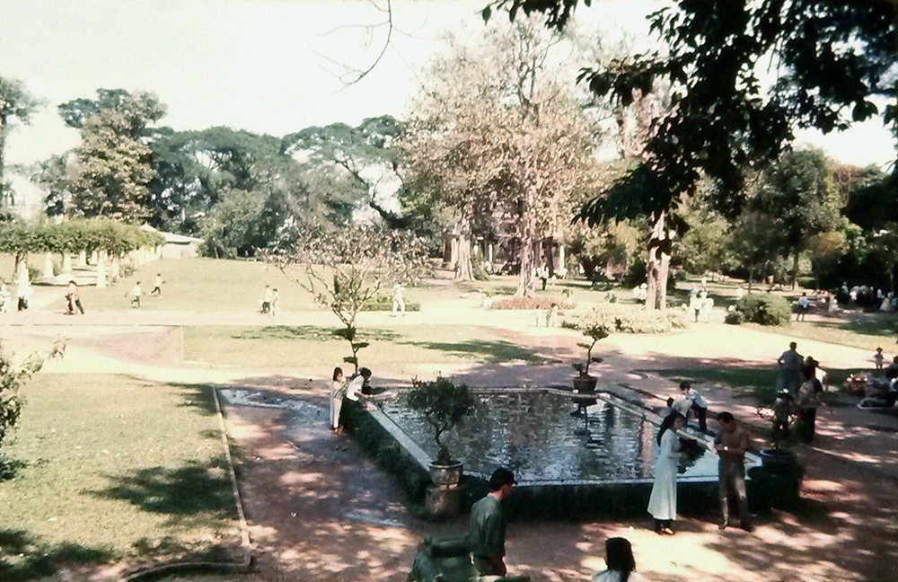 Ảnh chụp vào thập niên 1930. Góc dưới bên phải là Viện Bảo Tàng. Cạnh dưới hình là khu vực Thảo Cầm Viên. Đường dọc bên phải hình (dưới cánh máy bay) là đại lộ Norodom.